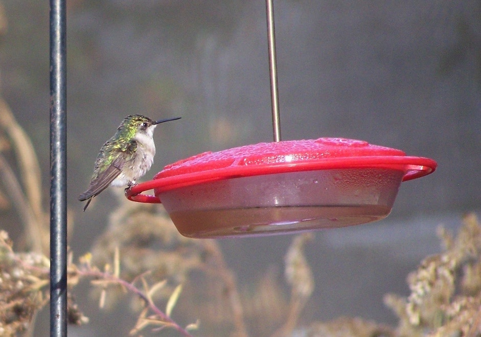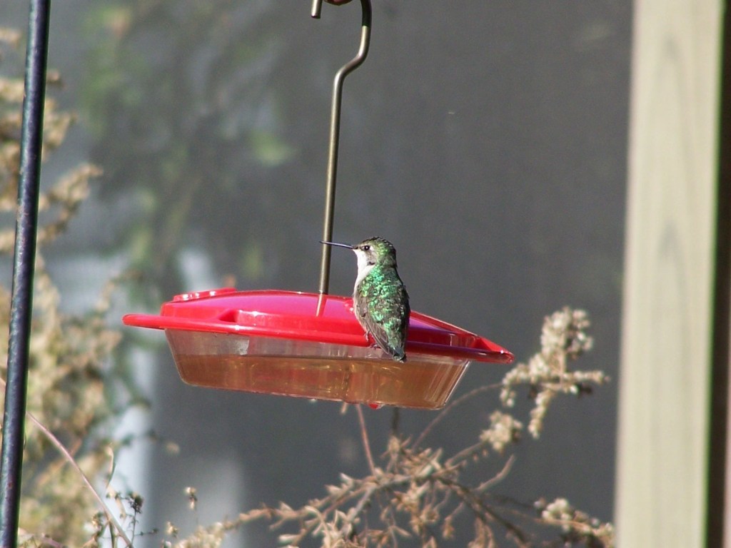 And when I added a red plastic feeder full of sugar-water, a hummingbird found it.