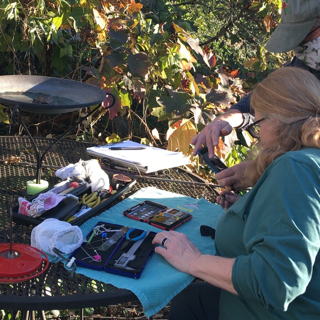 The next day, she drove an hour to my yard to catch my bird (which took about one minute), identify, weigh, measure, and band.