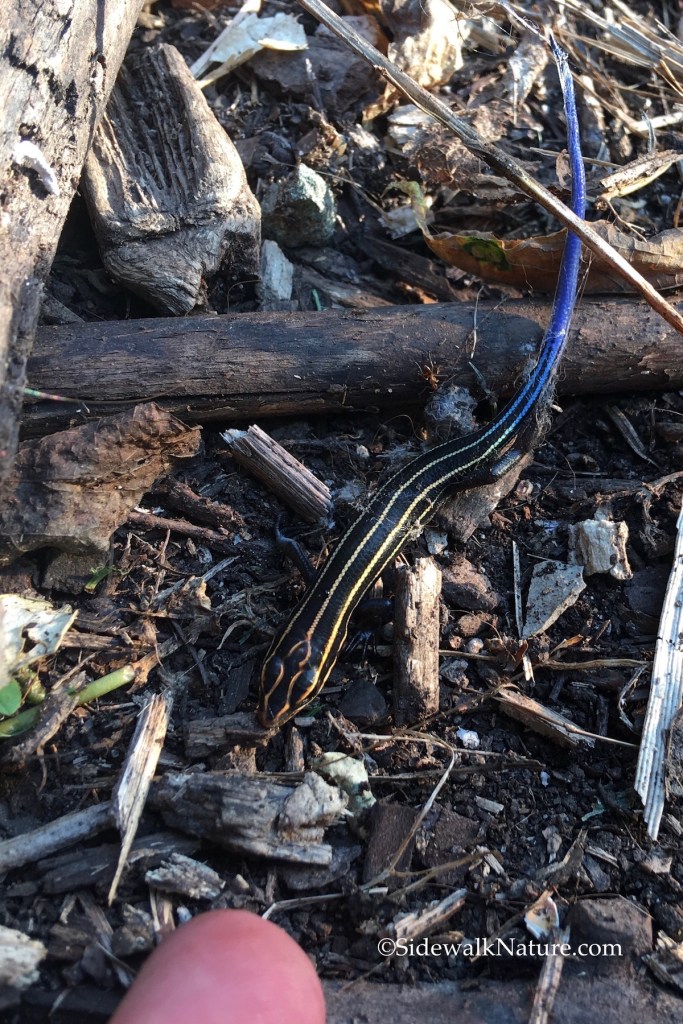 P.S. Both skinks were set free in the yard, minus as much strong, sticky silk as I could shift. Our yard is 100% skink-friendly: pesticide-free, herbicide-free, with no-mow zones and brush piles, logs, leaves, and rocks.