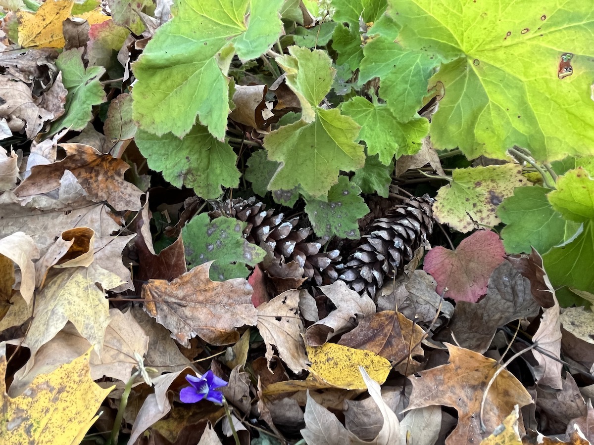 Pine cones are mulch and stabilizers around plants in the garden. I tuck them ’round everyone in the Shade Bed.