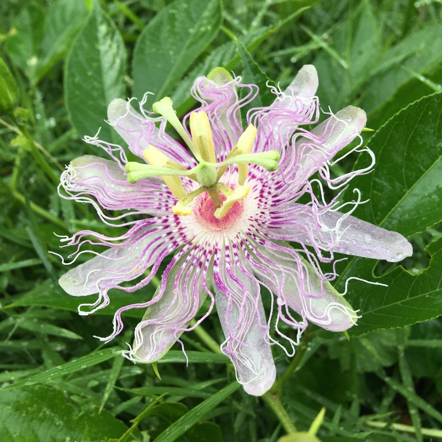 Purple passionvine (Passiflora incarnata) is the Tennessee State wildflower, and it grows wild state-wide. We also have the little yellow passionvine, Passiflora lutea, but while it is a Gulf Fritillary host, the leaves (and flowers) are smaller, and it is harder to find enough to support a big group of caterpillars.