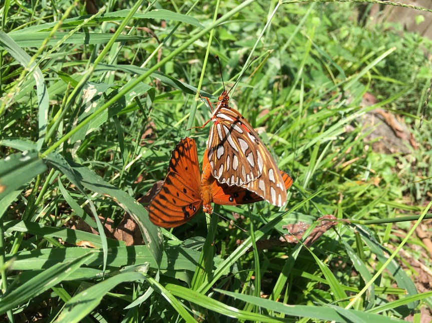 This experiment is possible because 1) the teacher is stellar and 2) I have access to a lot of passionvine, which attracts a lot of Gulf Fritillary action. At home, I get to see butterflies feeding, cruising, mating, laying eggs all through summer and early fall. Every day is Butterfly Day.