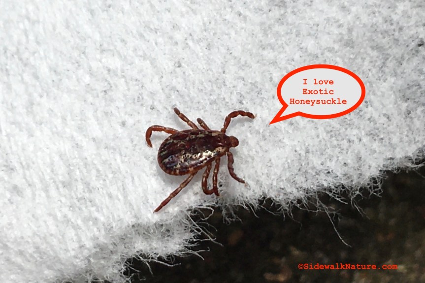 Ticks know this, so bush honeysuckle and Chinese privet—safe from deer and bunnies and caterpillars—are tick magnets.