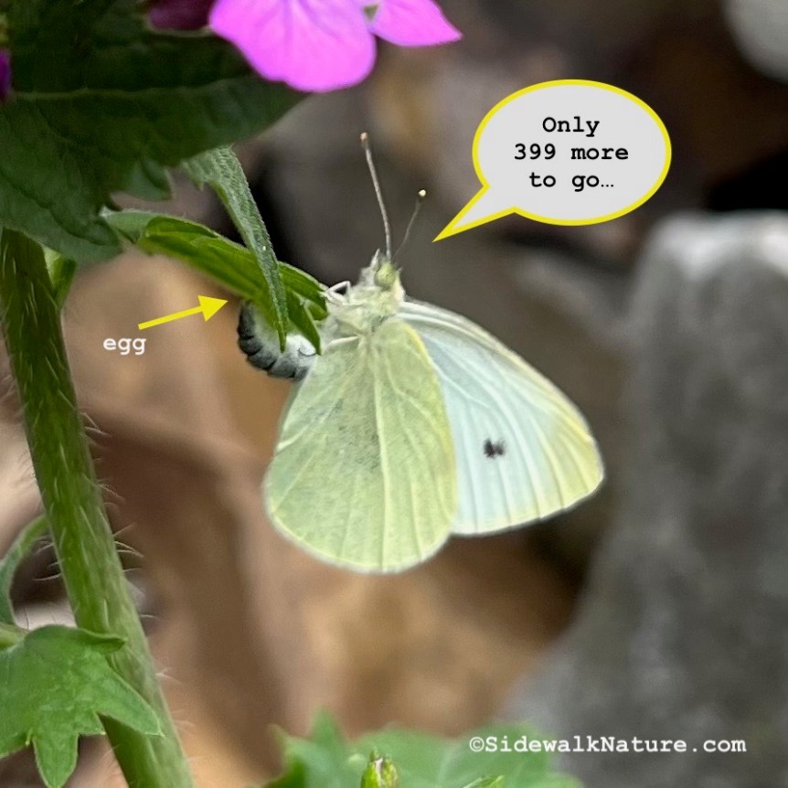 But after seeing today’s Cabbage White start a new generation of “cabbage worms,” I have a reason to cull even sooner. Each adult female can lay 300-400 eggs.