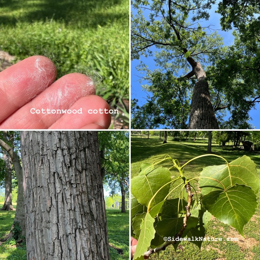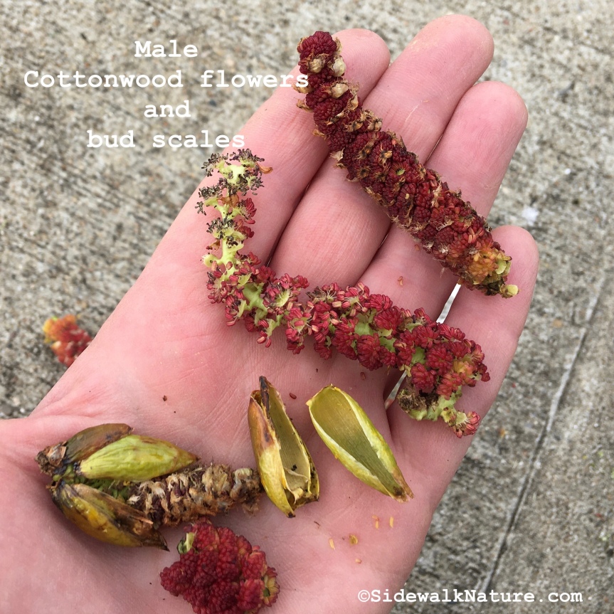 Another Cottonwood clue is when April sidewalks are littered with huge, pollen-dusted catkins: the male flowers. Look up, and there’s your Cottonwood.