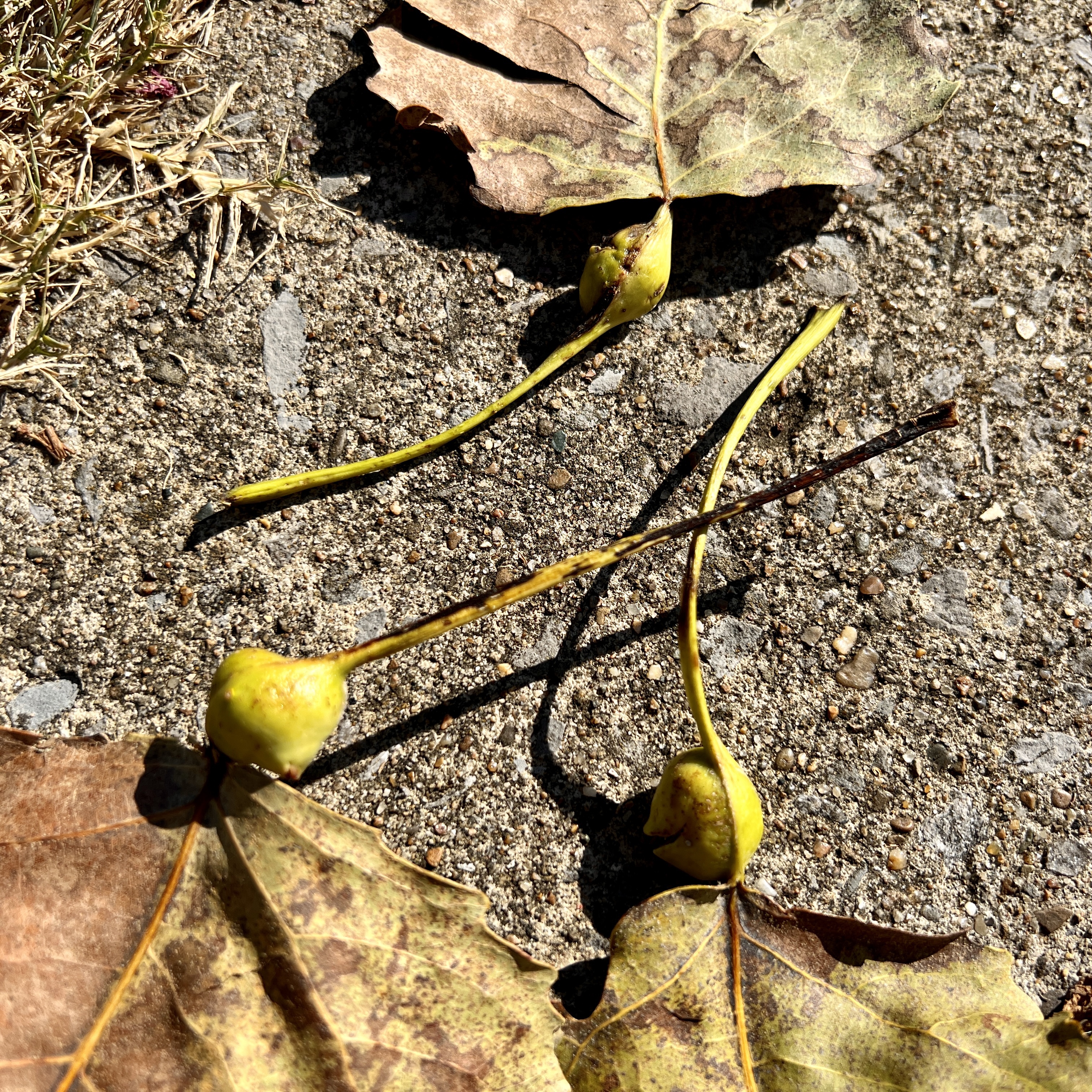Today’s Sidewalk Nature: Cottonwood petiole galls. Petiole = stem.