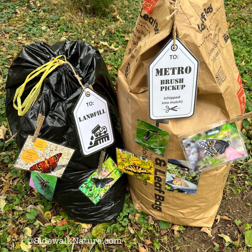 At our “Leave the Leaves Day,” my SidewalkNature display showed what’s inside our plastic and paper leaf bags. Here in Davidson county, plastic bags left at the curb go the landfill, but paper bags left at the curb get mulched. I used to think mulching was a good solution until I learned what else was in those bags.
