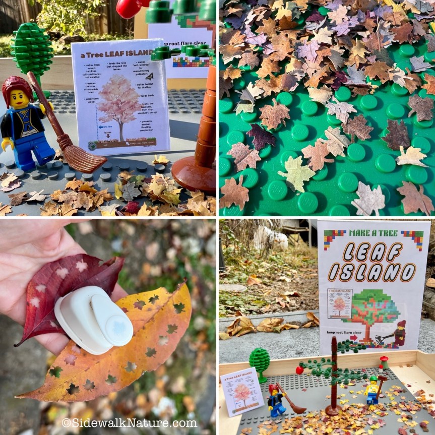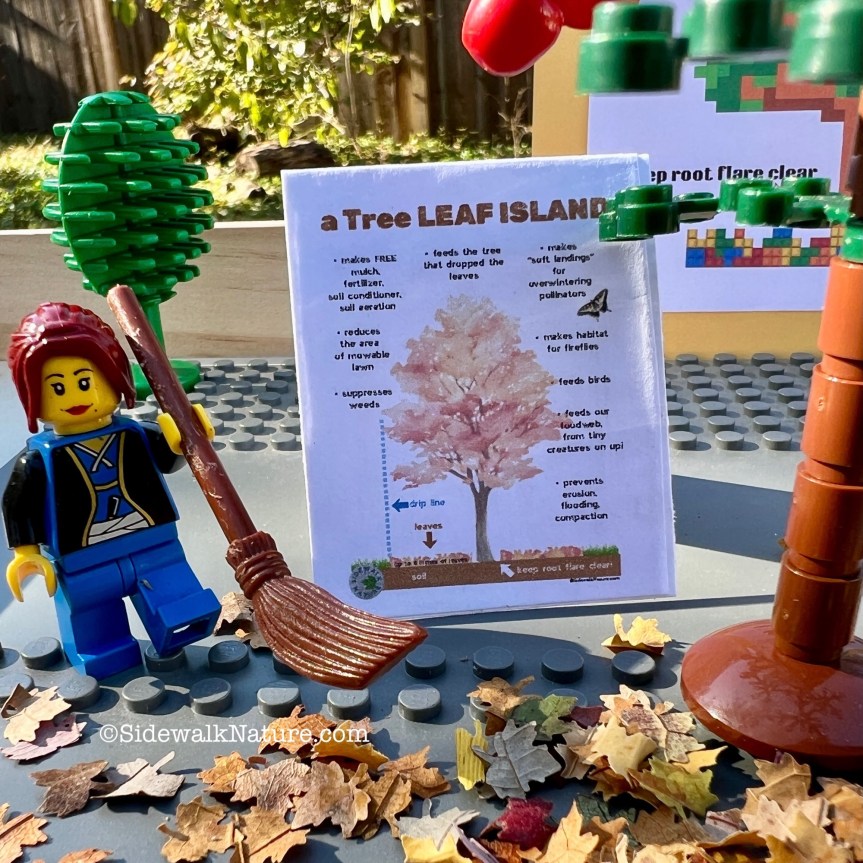 I used a punch to make LEGO leaves from real tree leaves so the minifigs could rake and sweep the real thing.