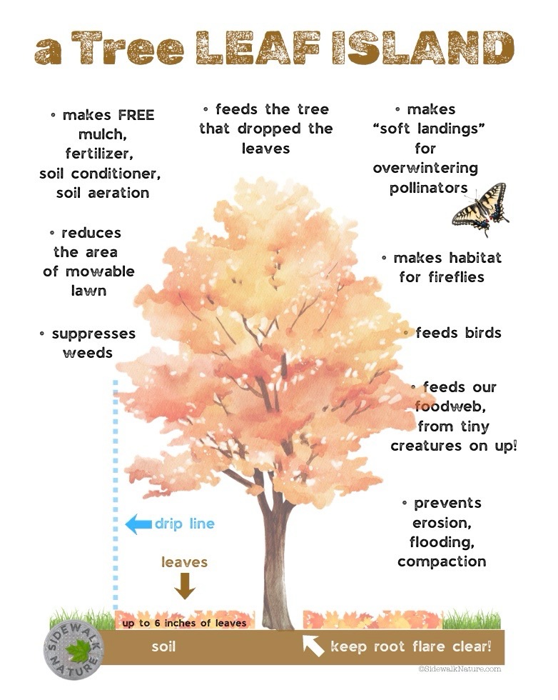 It shows an easy way to leave lots of leaves where they can do the most good: under the tree that grew them.
