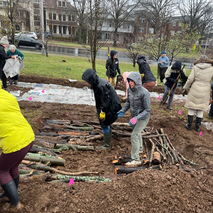 [making the Hugelkultur bed w/ SSG, BHN, and TEC volunteers at Portland Park]
