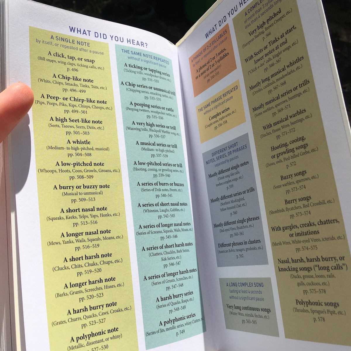 Even just the endpapers are helpful in Peterson Field Guide to Bird Sounds of Eastern North America. But this is the first time these endpapers don’t end a mystery. There’s this mystery bird, see, who I DON’T see, and who I barely hear: high, fast, faraway.