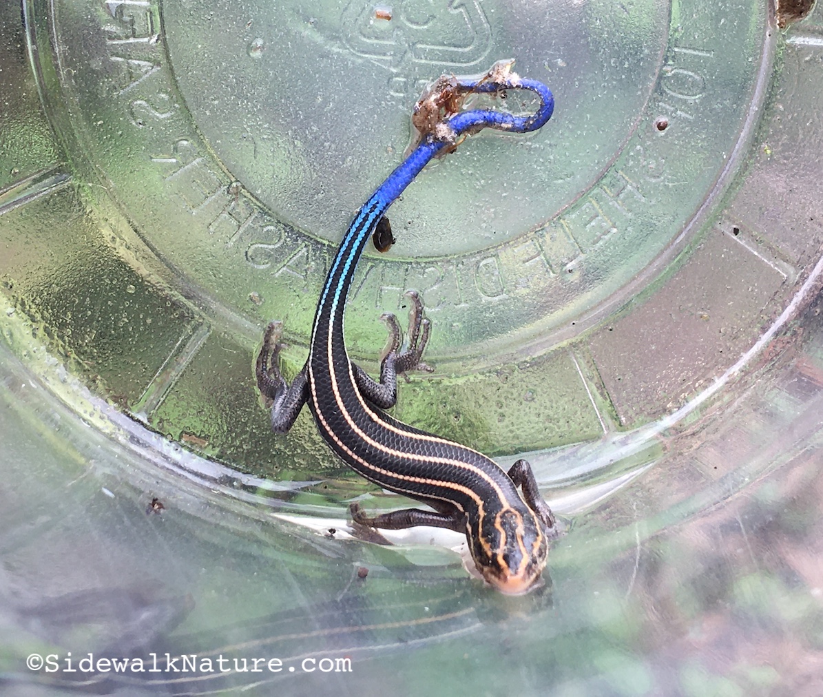 I found the first skink hanging by his tail, twisting and paddling an inch above the floor. He was caught in a spiderweb underneath a chair, and he was just a baby.
